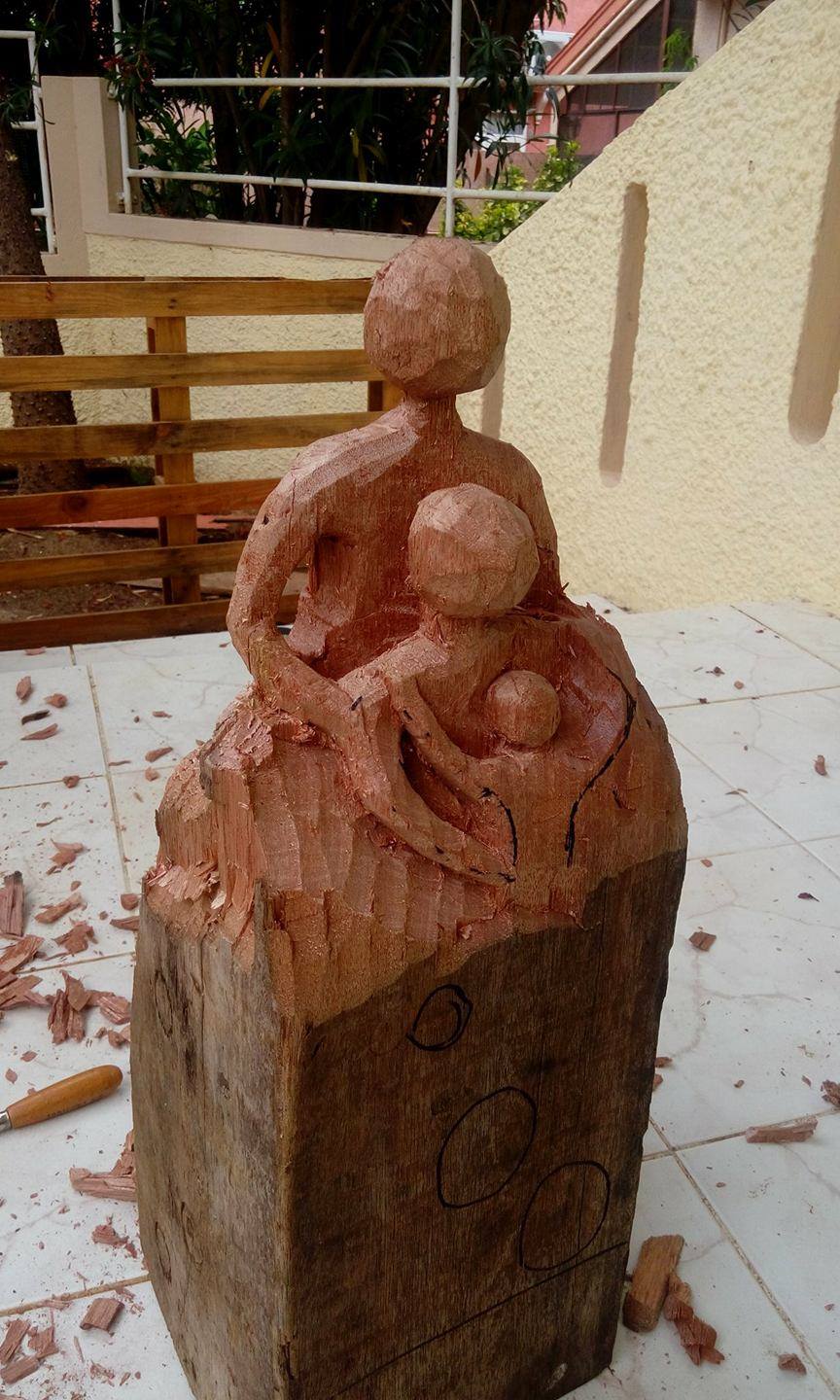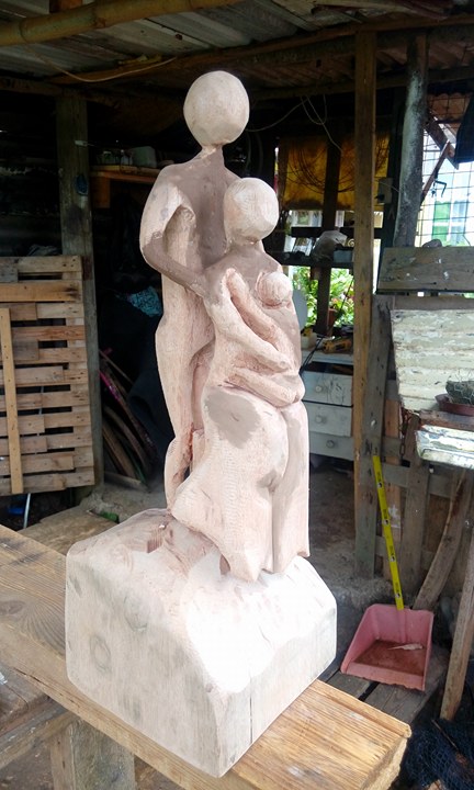 RastaChic a eu l’opportunité de répondre à une jolie commande pour des noces de bois (5 ans de mariage!)! Alberto a donc réalisé depuis une poutre en bois une représentation de la famille issue de ce mariage.